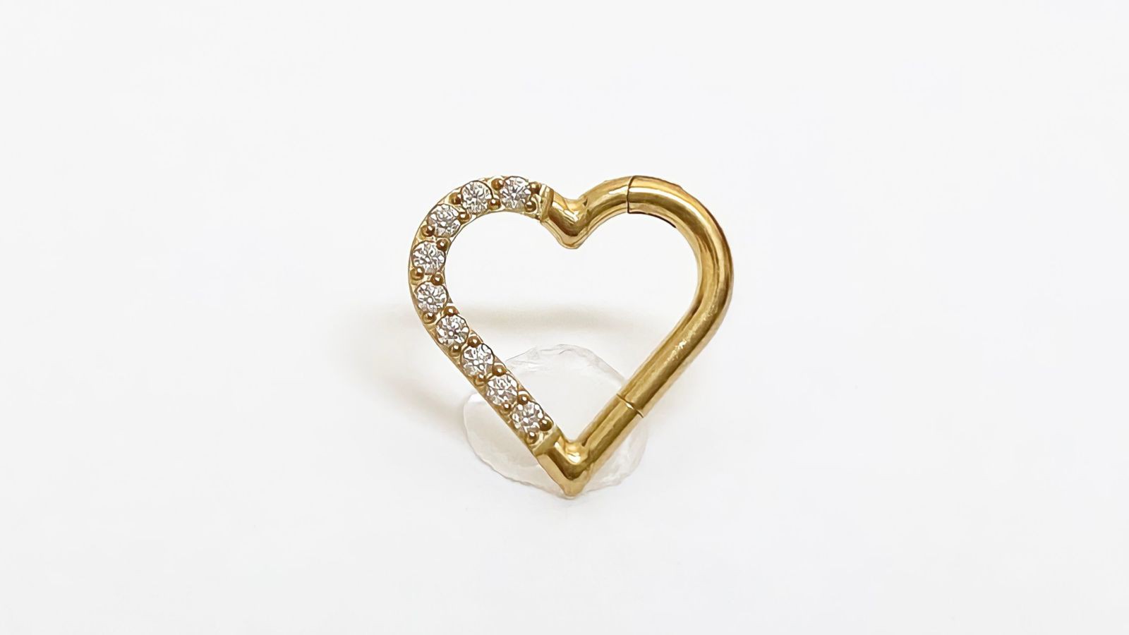 Coração titânio pvd gold cravejado lado dirt 1.2mm x 8mm