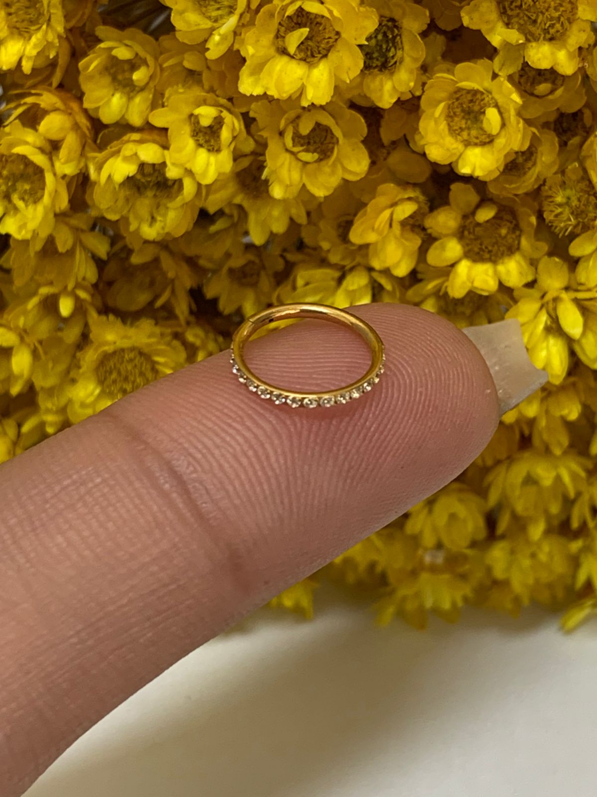 Segmento titânio gold cravejado 1.0mm x 8mm